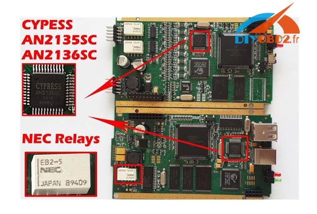 Dans le PCB, les ingénieurs ajoutent la haute qualité puce CYPRESS AN2135SC ou CYPRESS AN2136SC.